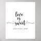 Este sinal de letra minimalista de amor é doce é perfeito para um casamento rústico ou chá de noiva. O design simples e elegante apresenta tipografia clássica e sofisticada em preto e branco.