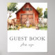 Convide seus convidados a assinar seu livro de hóspedes com este adorável sinal de chá de fraldas, apresentando uma cena de fazenda de aquarela com animais bonitos.