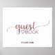 Este sinal de livro de visitas em rosa dourado simples é perfeito para um casamento moderno. O design minimalista apresenta uma fonte de letra de pincel elegante e um coração feminino adorável em folha de rosa dourado falsa.