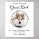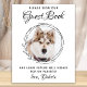 Inclua seu melhor cão, melhor gato e qualquer animal de estimação no seu casamento com este convite personalizado de livro de visitas com foto de animal de estimação. Perfeito para os amantes de cães, e um livro de visitas de cães será um sucesso no seu casamento. Simples moderno branco com esboço preto de folhas de eucalipto.
