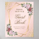 Este sinal floral elegante rosa bege e dourado com uma moldura geométrica dourada adornada com flores rosa bege e folhagens convida os convidados do casamento a assinar o seu livro de visitas. Itens correspondentes disponíveis. Personalize facilmente este modelo online.
