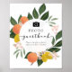 Com uma moldura circular rodeada por laranjas, limões, folhas e folhagens. Adicione texto personalizado usando os campos fornecidos.