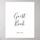 Este sinal de livro de visitas minimalista é perfeito para um casamento simples. O design romântico moderno apresenta tipografia clássica em preto e branco combinada com uma caligrafia rústica, porém elegante, com estilo de letra à mão vintage. Personalizável em qualquer cor. Mantenha o design simples e elegante, como está, ou personalize-o adicionando seus próprios gráficos e arte.