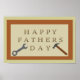 Esta poster espetacular mostra uma imagem de arte digital de uma mesa de madeira com um grupo de letras de madeira que soletra as palavras Happy Dia de os pais. Cada uma das letras tem uma série de unhas marteladas nela. Há também uma chave de um lado da placa e um martelo do outro lado. Um design de excelente para qualquer Pai que adora fazer coisas.