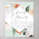 Projetado para combinar com nossa coleção de casamento Boho Blooms, este elegante sinal botânico é perfeito para ser colocado em uma mesa de memória ou exibição em homenagem aos entes queridos que faleceram. Personalize o texto do corpo (mostrado com "Em Memória Amorosa" e um breve poema) enquadrado por uma borda geométrica de flores de aquarela pastel e folhagem botânica em tons terrosos inspirados no deserto, em tons de pêssego, verde sálvia, branco e marfim.
