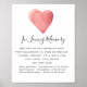 Um sinal de memória de casamento que pode ser colocado em uma mesa. Ele apresenta um coração de aquarela vermelha, um sentimento de memória e, em seguida, uma lista daqueles a serem lembrados.