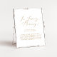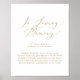 Este sinal de memória de casamento em ouro delicado é perfeito para um casamento moderno. O design minimalista romântico apresenta uma tipografia amarela dourada champanhe adorável e elegante em um fundo branco com uma aparência limpa e simples.