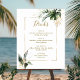 Este cartaz do cardápio de bar de casamento apresenta folhagem tropical verde-aquarela, monstera, folhas de palmeiras, folhas de bananeiras e folhas de ouro falso com uma falso estrutura de retângulo dourado. É perfeito para um casamento tropical, praia ou destino.