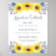 Convide os convidados a agarrar uma libação favorita com a nossa encantadora placa de bar de casamento. O sinal de bar 11x14 apresenta "cocktails de assinatura" em letras de escrita de caligrafia. Personalize com suas bebidas especiais com seis campos de texto personalizados. Uma adição chic à sua configuração de bar de casamento, esta placa é enfeitada com bordas de girassóis de cor amarela e botões de flor azul marinho que combinam com a nossa coleção de casamento de Flores Chic.