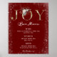 Um fundo vermelho com letras "JOY" em dourado falso e sinal de menu de bar de flores de inverno para o seu casamento, festa ou chá de panela, com acento de borda de brilho falso para adicionar um brilho festivo. Fácil de editar ou excluir os campos de texto para criar seu próprio sinal de bar personalizado!