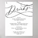 Este sinal de menu de bebidas com caligrafia romântica é perfeito para um casamento simples. O design clássico moderno apresenta redemoinhos elegantes e floreios caprichosos com tipografia elegante e manuscrita à mão. Personalize o sinal com as bebidas disponíveis em seu reception.