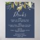 Poster Sinal de Menu de Bebidas de Casamento Azul | Verdu
