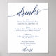 Este sinal de menu de bebidas de casamento com caligrafia azul marinho é perfeito para um casamento simples. O design neutro apresenta um cartaz minimalista decorado com tipografia romântica e caprichosa. Personalize o sinal com as bebidas disponíveis no seu casamento.