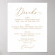 Este sinal de menu de bebidas de casamento com caligrafia em ouro delicado é perfeito para um casamento moderno. O design minimalista romântico apresenta uma tipografia amarela dourada de champanhe adorável e elegante em um fundo branco com uma aparência limpa e simples.