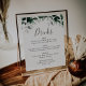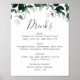 Este sinal de menu de bebidas de casamento com folhagem esmeralda é perfeito para um casamento boho. O design elegante, mas rústico, apresenta folhas escuras de água e eucalipto com um sentimento moderno e boêmio da floresta.