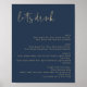 Este sinal de menu de bar apresenta fontes manuscritas e um design minimalista moderno com uma combinação de cores azul marinho e dourado. Altere facilmente a fonte e a cor do fundo para combinar com o seu evento. Isso é perfeito para um casamento, chá de casal, chá de noiva, festa de noivado ou qualquer outro evento especial.
