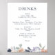 Poster Sinal de Menu Simples Rustic Floral Wedding Drinks