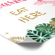 Este adorável sinal de mesa seria uma adição excelente a uma festa de aniversário temática de dinossauro. Coloque em um quadro 8X10 e mostre na mesa da comida. A design apresenta dinossauros cor-de-rosa com folhas de aquarela tropical, embelezamentos de folhas com brilho dourado e confete com brilho dourado.