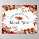 Sinal de Mesa de Cartões e Presentes Beleza Rústica Floral Moldura Aquarela Boêmia Outono ou Design de Outono com Flores Pintadas à Mão Boho, penas e muito laranja colorido, ferrugem, vermelho, Borgonha, Marsala e folhas e folhagens de pêssego. Com elementos de linha desenhados à mão, fontes manuscritas espiraladas e sinal de mesa de cartões e presentes de casamento com borda completa!