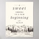 Convide os convidados a pegar alguns doces com o nosso encantador sinal de mesa de sobremesa de casamento. A placa de mesa de sobremesa 11x14 apresenta uma borda inferior de picos de montanha esboçados manualmente, pinheiros e um rio fluido, com "um final doce para um novo começo" em letras castanho robustas e plumáveis. Personalize com sua data de casamento sob a inscrição.