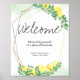 Sinal de boas-vindas em água que você pode personalizar com uma mensagem de boas-vindas ou direcionar convidados para sua mesa de limonada, por exemplo. A design tem terras de limões de citros e verde em uma moldura geométrica dourada com lavagem de cor verde-menta. Bem-vindo é escrito em tipografia casual escrita à mão e o texto restante é editável. Por favor, navegue na minha loja para coordenar convites para chuveiros de bebês e cartões de cervejas.