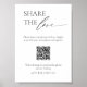 Capture cada momento e compartilhe o amor em seu dia especial com nosso elegante Sinal de Mídia Social de Casamento, com design minimalista e belas fontes de caligrafia. Conecte seus convidados sem esforço ao álbum digital ou página da Web do seu casamento com uma simples digitalização do código QR integrado. Perfeito para capturar e compilar todas as suas memórias queridas em tempo real. Uma adição obrigatória à sua decoração de casamento para o casal moderno.