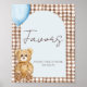 Celebramos em estilo com isso. Mal podemos esperar o sinal de favor da festa do Chá de fraldas Boy, desenhado com um arco azul macio, xadrez marrom charmosa de gingham, e um doce ursinho de água doce segurando um balão azul. A placa diz "Favores" com texto personalizável abaixo, perfeito para adicionar um toque pessoal como "por favor, faça um favor para desfrutar". Este sinal de mesa de chá de fraldas facilita o guiamento dos hóspedes ao amarrar a decoração. Junte-o aos convites, cartões de jogo e placas do cheio que mal podemos esperar pela coleção de Porch and Gable Design para criar uma celebração coesa e memorável.