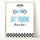 Este é um Sinal de Mesa do Gift Parking Blue Race Car Party!