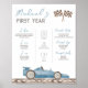 Aumente as memórias com este Sinal de Marco de Carro Azul Retroativo Editável! Apresentando gráficos de carros de corrida antigos e destaques personalizados do primeiro ano do seu pequeno, este design encantador faz uma adição perfeita a uma celebração de primeiro aniversario. Personalize facilmente com o nome do seu bebê, estatísticas e marcos favoritos para criar uma manutenção única que é cheio de personalidade e velocidade!