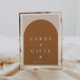 Este cartaz e sinal de presentes apresenta uma cor laranja queimada e bege, combinada com um layout moderno minimalista e um simples arco boêmico. É o sinal perfeito para o seu deserto boêmico ou evento de tons de terra rústica.