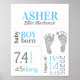 Segure este Guarda-Enfermeiro personalizado na parede do seu bebê. Este sinal de parto de bebê azul tem todas as suas informações sobre o nascimento, incluindo data, hora de nascimento, peso e local de nascimento. Há até um lugar onde você pode adicionar a pegada dele. Adicione seu próprio sistema de medição. O sinal de anúncio de nascimento do seu bebê será apreciado ao longo dos anos à medida que envelhecer. Crie o sinal de parto do seu novo bebê ou faça um para um amigo ou membro da família. presente de excelente para festas de bebês.