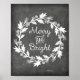 Padrão de quadro de cristais venenoso sinal de decoração de natal poster com faixa de natal rusticada e Feliz e Brilho escritos em letras de estilo manuscrito. Perfeito para decorar durante o feriado ou para aquela adição especial ao seu natal ou festa de férias.