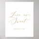 Este sinal de noivado doce amor em ouro delicado é perfeito para um casamento moderno. O design minimalista romântico apresenta uma tipografia amarela dourada champanhe adorável e elegante em um fundo branco com uma aparência limpa e simples. Personalize o texto para dizer o que você quiser!