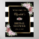 Sinal de boas-vindas de noivado floral listrado preto e branco elegante. Itens correspondentes disponíveis.