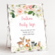 Crie o seu próprio sinal de partido personalizado! A design apresenta animais lindos de floresta com florais cor-de-rosa pincelados e sotaques de folhas douradas.