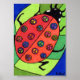 Decorem suas paredes em estilo com este poster único e colorido de mini folk art. Nesta trabalho de arte colorida e caprichosa, esta rara e bela joaninha está sentada sobre uma folha contra um fundo azul profundo, mostrando seus pontos incomuns, cada um dos quais é um sinal de paz multicolorido diferente.