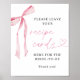 Este Sinal de Cartão de Receita de Arco Rosa-Esbranquiçado apresenta uma fita pintada à mão com uma elegância minimalista belamente moderna para ser exibida no seu chá, casamento ou evento especial. Edite facilmente a maioria dos textos para corresponder ao seu evento! As cores de texto e de fundo são totalmente editáveis —> clique no botão "Editar usando a ferramenta Design" para editar!