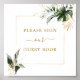 Esta placa de casamento do livro de convidados apresenta folhagem tropical verde-aquarela, monstera, folhas de palmeiras, folhas de bananeiras e folhas de ouro falso com uma falso estrutura quadrada de ouro. É perfeito para um casamento tropical, praia ou destino.