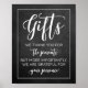 Este moderno e muito moderno sinal de presentes de casamento é perfeito para os seus convidados como parte da vossa decoração de casamento. A design apresenta uma letra de tipografia de moda em um fundo estilo chalkboard, perfeito para qualquer carboneto e noivo no dia do casamento.