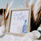 Comemore em estilo com nosso fino sinal de chá de panela "Cartões e presentes". Este elegante design apresenta uma ilustração com uma espantosa aquarela de uma garrafa de prosecco floral azul adornada com pérolas lustrosas e delicadas flores brancas, como rosas e peônias, estabelecendo o tom para um evento sofisticado e glamouroso. Este sinal é lindamente acentuado com uma elegante fonte azul moderna, acrescentando um toque de luxo e charme ao olhar geral.