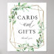 Quadro geométrico elegante de ouro, adornado com verde-aquarela, símbolo personalizado de "cartas e presentes" de casamento. O estilo design de tipografia moderna mistura script com tipo ousado.