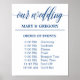 Póster Sinal de Programação de Casamento em Caligrafia Az