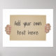 Mãos segurando um sinal de protesto de cartolina de vazio - adicione sua própria mensagem a este design de modelo. Todo texto pode ser personalizado.