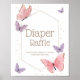 Cartaz de Fralda com tema borboleta Raffle para Chá de fraldas. Se você trouxe fraldas para a rifa, por favor, deixe-as aqui. Personalize com seu próprio texto, se desejar.