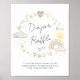 Balsa de fralda branca e branca de vassoura-de-chá de fraldas, gota a gota de poster com aquarelas pastel de um arco-íris, sol, corações, estrelas, luas e nuvens e "Fralda Raffle" num roteiro de na moda-caligrafia.