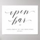 Sinal de Casamento de Script de Caligrafia Elegante - Os elogios de bar aberto dos recém-casados desfrutam! ou texto personalizado. Um na moda, mas simples, design formal em preto e branco ou qualquer cor de fundo que você escolher. Basta clicar no link personalizar mais, mostrado na área de personalização de texto à direita, e escolher seu fundo de cor personalizado. Este poster de placa faz com que seja rápido e fácil criar acréscimos incríveis à decoração do casamento. Os sinais podem ser ampliados, há muitos tamanhos a serem escolhidos, assim como opções para enquadramento e correspondência personalizados. sinalização personalizada de casamento. ~ Verifique meu compro ou coleção abaixo para ver mais sinais complementares do seu casamento