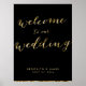 Folha de ouro Bem-vindo ao nosso poster de impressão recepção de casamento de de de de de de Casamento com texto personalizável - você pode adicionar o nome da noiva e do noivo e a data do casamento, impressos em fundo preto. As dimensões do impressão de sinal (poster de retrato mate) são de 18 por 24 polegadas.