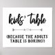 Esta placa de casamento divertida é a forma perfeita de marcar a mesa das crianças na sua recepção de casamento.