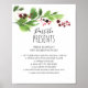Mostra as regras do jogo de troca de presentes com este sinal de decoração de feriado. O sinal de mesa de presente 8x10 contém as palavras Gift Exchange Rules in hand lettered script typografia. Personalize com Yankee Swap, White Elephant Gift, China Gift Exchange ou quaisquer regras que você queira. Uma adição divertida à decoração da sua festa de férias, esta placa é enfeitada com um spray de cor d'água verde de Natal e bagas vermelhas corresponde à minha coleção de férias. Para mais informações visite o VG Invites no Zazzle