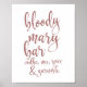 Um elegante cartaz de casamento de vanguarda, apresenta o texto "Bloody Mary bar, vodka, mix, especiarias e garnish" em uma letra extrovertida, a textura brilhante acrescenta um toque festivo e glamouroso. A cor de fundo pode ser personalizada de acordo com as suas necessidades e preferências, contacte-me se tiver alguma solicitação especial.